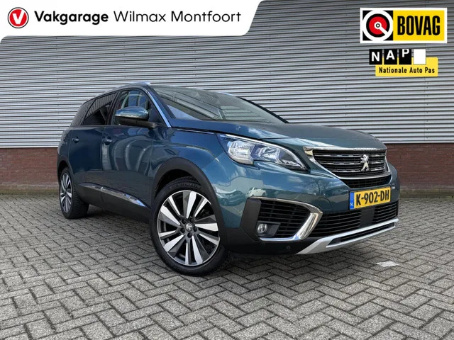 Peugeot 5008 PureTech Blue Lease Premium Avantage|7Pers.|Trekhaak|Camera|Cruise|Keyless|Automaat|. Kenteken: K-902-DH; Merk: Peugeot; Model: 5008; APK tot: 30-11-2026; Tellerstand: 94890 KM; Carrosserievorm: SUV; Aantal deuren: 5; Brandstofsoort: Benzine; Bouwjaar: 2020; Transmissie: Automaat; Kleur: groen Metallic; Bekleding: Leder/Stof; Motorinhoud: 1199 cc; Aantal cilinders: 3; Motorcode: HN05; Vermogen: 96 kW / 131pk; Ledig gewicht: 1405 kg; Max. trekgewicht: 950 kg; Aantal zitplaatsen: 7; Verbruik: 5 l/100 km; BTW/Marge: BTW aftrekbaar, de prijs is inclusief BTW; Lengte: 464 cm; Breedte: 184 cm; Aantal sleutels: 2; Onderhoudshistorie aanwezig: ; Motorrijtuigenbelasting: € 226 - 247 per kwartaal; Emissieklasse: Euro 6. Pakket: LED lichtpakket. LED koplampen; LED mistlampen. Comfort. Cruise control; Regensensor. Exterieur. Buitenspiegels elektrisch inklapbaar; Buitenspiegels elektrisch verstel- en verwarmbaar; Buitenspiegels in carrosseriekleur; Buitenspiegels met verlichting...