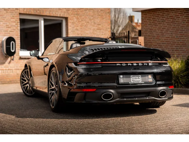 Nieuw op voorraad! Prachtige Porsche 911 (992) Carrera 4S Cabrio 450 PK Automaat uit 2021, afkomstig van de eerste eigenaar en volledig dealer onderhouden. Slechts 47.000 km gereden en in absolute topstaat. Zeer rijk uitgerust met o.a. 21”/20” velgen, Burmester audio, stoelverwarming en - ventilatie, Porsche InnoDrive, 18-voudig verstelbare lederen sportstoelen, Sport Chrono, Sportuitlaat, 360° camera, SportDesign pakket, Carbon interieurafwerking en Matrix LED koplampen. Een compleet uitgevoerde en perfect onderhouden 911 voor de echte liefhebber. 8 versn., Automaat; 4WD; Bandenmaat voor: 245/35 R20; Bandenmaat achter: 305/30 R21; 332 kW; 6 cilinders; 2.981cc; Gewicht: 1.575kg; GVW: 1.575kg; LxBxH: 452x185x130cm; Wielbasis: 245cm; 0-100 km/h: 3,8s; Topsnelheid: 304km/u; Interieurkleur: zwart; 4 zitplaatsen; 10,2 l/100km; Dealer onderhouden (onderhoudsboekjes aanwezig); APK: tot jun. 2027; 1 sleutel; Wegenbelasting: € 280-€ 306p/kwrt; vanaf € 2.242 p/m (informeer naar de...
