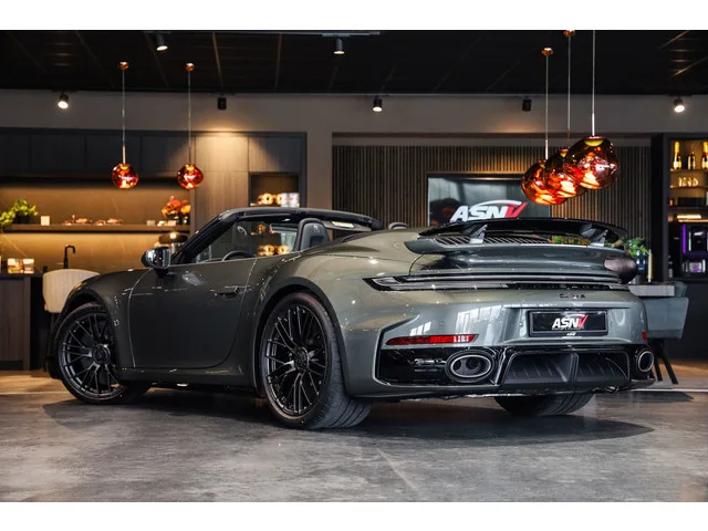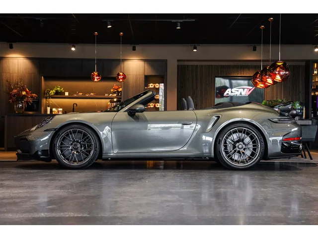 2-persoons achterbank, 20/21 inch 911 Turbo S Design wiel in Turbonite, Achterasbesturing inclusief stuurbekrachtiging Plus, Achteruitrij assistent, Achteruitrijcamera met 360 graden View, Achterzijde luchtinlaten in exterieurkleur gespoten, Achterzijde sportstoelen leder met stiksels, Active voetgangersbescherming, Aluminium sportpedalen, Assistentie Pakket, Automatische koplampactivering / Lichtsensor, Bandenvulmiddel met elektrische compressor, Bestuurdersinformatiesysteem, Binnenverlichting-pakket LED, Botswaarschuwingssysteem met remfunctie, Burmester 3D High-End Surround Sound System, Carbon mat interieurpakket met accenten in Turbonite, Club lederen interieur Basalt Black met interieurpakket Turbonite, Comfort Access (openen en starten zonder sleutel), Configureerbare ambienteverlichting, Contrast Stitching, Cruise control adaptief met Stop&Go, Dodehoek detector, Drive Assist Pack, Elektrisch bedienbaar zwart gestoffeerde cabrioletkap, Elektrisch verstelbaar stuurwiel met F1-schakeling, Elektrisch verstelbare Adaptieve sportstoelen (18-voudig), Exclusive Design tankdop in Turbonite, File-assistent, File-assistent, Geheugenfunctie op bestuurdersstoel, Getinte HD-Matrix LED-koplampen, Gordels in Turbonite, Grille, sierlijsten, louvres in hoogglans zwart, HomeLink (garagedeuropener), Hoofdairbag-systeem (Windowbag) voor, Hoofdsteunen voor met TURBO S embleem, Instaplijsten verlicht van Carbon met '' Turbo S'' opschrift, Ionisatiesysteem (verbetert de luchtkwaliteit), ISOFIX-kinderzitjesvoorbereiding, LED Exclusive design achterlichten, Licht-design pakket, Liftsysteem vooras, Logo projectie d.m.v. spiegels, Luchtinlaat en -uitlaat Lamellen gespoten (Zwart), Middenconsole leder bekleed met Turbo S opschrift en stiksels, Modelaanduiding gespoten kleur: Hoogglans zwart, Mogelijkheid tot muziek-streaming, Navigatiesysteem van Europa met grootbeeld kleuren-touch-screen, Niet-Rokers-Uitvoering, Niveauregeling, Parkeer-assistent, Parkeer pakket, PASM Sportonderstel (-10MM), PDK Transmissie - 8 Versnellingen, Porsche Active Suspension Management (PASM), Porsche Ceramic Composite Brake - PCCB, Porsche Dynamic Chassis Control (PDCC), Porsche Exclusive Manufaktur - lederen dashboard, Porsche Torque Vectoring Plus ( PTV Plus), Portierarmsteunen in leder met stiksels, Power Steering Plus, Remzadels Zwart hoogglans gespoten met Porsche opschrift, Rondomzicht camera, Service-systeem: Intelligente noodoproep incl. TeleServices, Smartphone integratie (Apple CarPlay + Android Auto),, Sport-Chrono Pakket Plus, Sport-Design pakket in hoogglans Zwart, Sportuitlaatsysteem incl. ronde sporteindpijpen, Stability en Traction Control, Statusweergave voor veiligheidsgordels achterbank, Van binnen te ontgrendelen achterklep (Elektrisch), Van binnen te ontgrendelen motorkap (Elektrisch), Verwarmd GT-sportstuurwiel in leder met stuurwielpaneel in carbon mat, Vloermatten met Porsche-aanduiding, Volautomatische comfort airconditioning, Voorbereiding Porsche Dashcam, Voorruit met grijze band, Voorspoiler met TURBO S opschrift, Voorstoelen in hoogte verstelbaar, Wijzerplaat toerenteller en Sport Chrono in wit uitgevoerd, Zilveren armaturen verwerkt in het dashboard, Zonnekleppen leder, Zonnekleppen met spiegel (verlicht), Zwart stoffen hemelbekleding