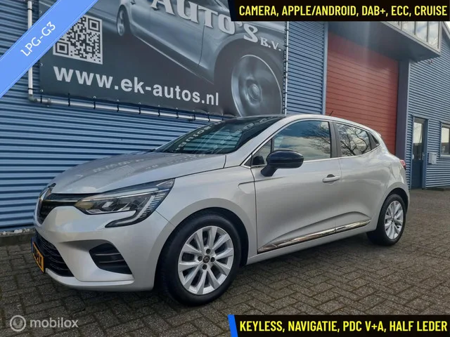 Renault Clio 101pk Bi-Fuel LPG-G3. Half leder, Full LED koplampen, Virtual, Sfeerverlichting, Keyless, DAB+, Camera, Cruise, PDC. Renault Clio 1.0 TCe Bi-Fuel LPG-G3. Luxe en in topstaat !! Kenteken: J-812-LX; Merk: Renault; Model: Clio; APK tot: 09-09-2026; Tellerstand: 84777 KM; Carrosserievorm: Hatchback; Aantal deuren: 5; Brandstofsoort: LPG G3 / Benzine; Bouwjaar: 2020; Transmissie: Handgeschakeld; Kleur: grijs Metallic; Bekleding: Leder/Stof; Kleur interieur: antraciet; Interieurnaam: Intens Luxe; Motorinhoud: 999 cc; Aantal cilinders: 3; Motorcode: H4D D4; Vermogen: 74 kW / 101pk; Ledig gewicht: 1112 kg; Max. trekgewicht: 900 kg; Aantal zitplaatsen: 5; Verbruik: 4.6 l/100 km; BTW/Marge: Marge, de BTW is niet aftrekbaar; Lengte: 405 cm; Breedte: 173 cm; Aantal sleutels: 2; Onderhoudshistorie aanwezig: Ja; Motorrijtuigenbelasting: € 203 - 215 per kwartaal; Emissieklasse: Euro 6. Pakket: Pack Style. Extra getint glas achter; LED mistlampen; Zwarte (glans) exterieur delen. ...