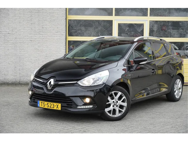 Renault Clio Estate met de zeer luxe aanwezige opties als Lichtmetalen velgen 16" | Led dagrijverlichting | Parkeersensoren | Keyless entry | Navigatiesysteem | Airco | Cruise control | Extra getint glas. 5 versn., Handgeschakeld; Modeljaar: 2016; Voorwielaandrijving; 66 kW; 140 Nm; 3 cilinders; 898cc; Gewicht: 1.063kg; Laadvermogen: 576kg; GVW: 1.639kg; Max. trekgewicht: 1.200kg; LxBxH: 427x173x148cm; Wielbasis: 259cm; 40l tank; 0-100 km/h: 13,1s; Topsnelheid: 180km/u; Interieur: zwart, Stof; 5 zitplaatsen; 4,6 l/100km; 5,7 l/100km; 4 l/100km; 104 g/km CO₂; Energielabel B; Euro 6; Dealer onderhouden (onderhoudsboekjes aanwezig); Aantal eigenaren: 3; APK bij aflevering; Wegenbelasting: € 145-€ 158p/kwrt; vanaf € 112 p/m (informeer naar de mogelijkheden en voorwaarden); TS-523-X