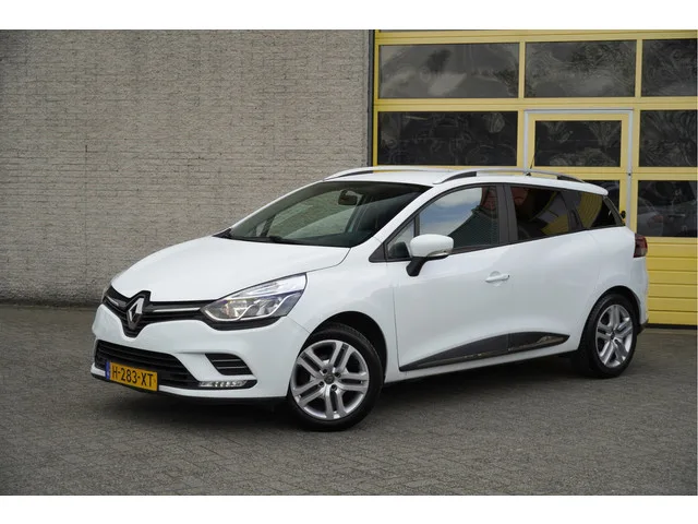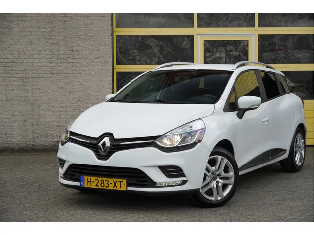 Renault Clio Estate met de zeer luxe aanwezige opties als Led dagrijverlichting | Parkeersensoren | Trekhaak | Navigatiesysteem | Airco | Cruise control | Extra getint glas. 5 versn., Handgeschakeld; Modeljaar: 2018; Voorwielaandrijving; 66 kW; 140 Nm; 3 cilinders; 898cc; Gewicht: 1.098kg; Laadvermogen: 556kg; GVW: 1.654kg; Max. trekgewicht: 1.200kg; LxBxH: 427x173x148cm; Wielbasis: 259cm; 45l tank; 0-100 km/h: 12,2s; Topsnelheid: 178km/u; Interieur: zwart, Stof; 5 zitplaatsen; 5,1 l/100km; 6,4 l/100km; 4,4 l/100km; 136 g/km CO₂; Energielabel C; Euro 6; Dealer onderhouden (onderhoudsboekjes aanwezig); Aantal eigenaren: 3; APK bij aflevering; Wegenbelasting: € 145-€ 158p/kwrt; vanaf € 143 p/m (informeer naar de mogelijkheden en voorwaarden); H-283-XT