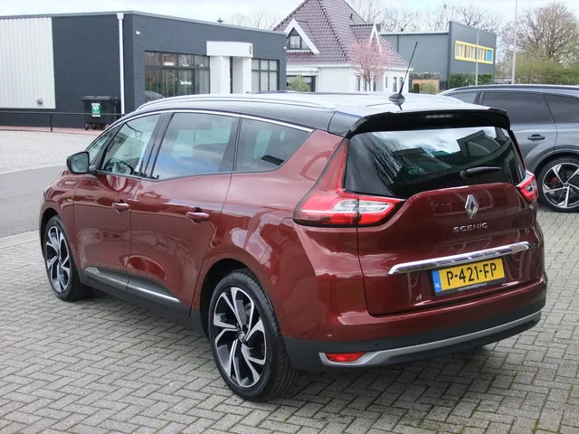 Keurig nette Grand Scenic met veel opties . Auto is door ons in 03-2022 geimporteerd en verkocht met 47000 km destijds. Ook al die tijd bij ons in onderhoud geweest bij dezelfde eigenaar . 7 versn., Automaat; Modeljaar: 2018; Voorwielaandrijving; 104 kW; 240 Nm; 4 cilinders; 1.330cc; Gewicht: 1.465kg; Laadvermogen: 627kg; GVW: 2.092kg; Max. trekgewicht: 1.850kg; LxBxH: 464x187x165cm; Wielbasis: 280cm; 53l tank; 0-100 km/h: 10,4s; Topsnelheid: 192km/u; Interieurkleur: zwart; 5 zitplaatsen; 5,5 l/100km; 6,8 l/100km; 4,8 l/100km; 124 g/km CO₂; Energielabel B; Euro 6; Onderhoudsboekjes aanwezig; APK: tot nov. 2026; 1 sleutel (1 handzender); Wegenbelasting: € 253-€ 276p/kwrt; vanaf € 302 p/m (informeer naar de mogelijkheden en voorwaarden); P-421-FP