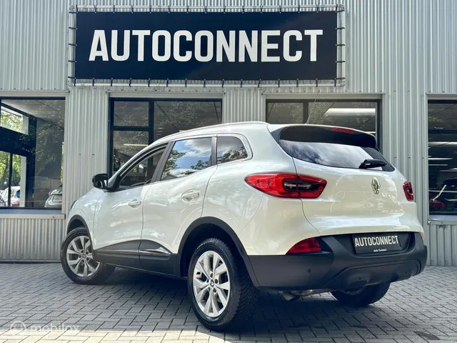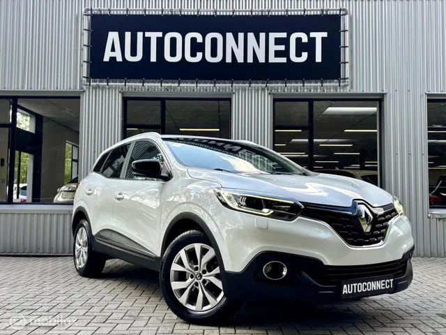 Renault Kadjar 1.2 TCe. AUTOMAAT, NAVI, LEDER, CRUISE, STOELVERWARMING. Merk: Renault; Model: Kadjar; Tellerstand: 112952 KM; Carrosserievorm: SUV; Aantal deuren: 5; Brandstofsoort: Benzine; Bouwjaar: 2018; Transmissie: Automaat; Kleur: wit Parelmoer; Bekleding: Leder/Stof; Motorinhoud: 1198 cc; Aantal cilinders: 4; Vermogen: 96 kW / 131pk; Ledig gewicht: 1295 kg; Aantal zitplaatsen: 5; Verbruik: 5.5 l/100 km; BTW/Marge: Marge, de BTW is niet aftrekbaar; Aantal sleutels: 2; Onderhoudshistorie aanwezig: Dealer onderhouden. Pakket: Winter pack. Koplampreiniging; Verwarmde voorruit; Voorstoelen verwarmd. Comfort. Boordcomputer; Cruise control; Regensensor. Exterieur. Achterruitwisser; Automatische airco; Buitenspiegels elektrisch inklapbaar; Buitenspiegels elektrisch verstel- en verwarmbaar; Buitenspiegels in carrosseriekleur; Camera; Dakrails; Dimlichten automatisch; Extra getint glas achter; Half leder bekleding; Keyless entry; LED achterlichten; LED dagrijverlichting; Lichtmetalen...