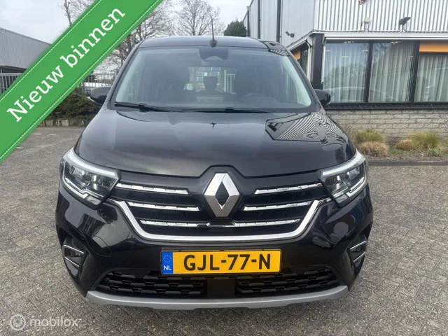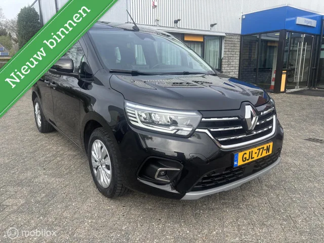 Renault Kangoo 1.3 TCE INTENS. Kenteken: GJL-77-N; Merk: Renault; Model: Kangoo; APK tot: 24-01-2027; Tellerstand: 93109 KM; Carrosserievorm: Overig; Brandstofsoort: Benzine; Bouwjaar: 2021; Kleur: zwart Metallic; Motorinhoud: 1332 cc; Aantal cilinders: 4; Motorcode: H5H E4; Vermogen: 75 kW / 102pk; Ledig gewicht: 1450 kg; Max. trekgewicht: 1500 kg; Aantal zitplaatsen: 5; BTW/Marge: Marge, de BTW is niet aftrekbaar; Lengte: 449 cm; Breedte: 186 cm; Aantal sleutels: 2; Onderhoudshistorie aanwezig: Ja; Motorrijtuigenbelasting: € 226 - 247 per kwartaal; Emissieklasse: Euro 6. Comfort. Cruise control; Regensensor. Exterieur. Achterruitwisser; Buitenspiegels elektrisch verstelbaar; Buitenspiegels verwarmbaar; Centrale vergrendeling; Metaalkleur; Park Distance Control; Trekhaak. Infotainment. Navigatiesysteem; Stuur multifunctioneel. Interieur. Achterbank in delen neerklapbaar; Airco; Automatische airconditioning; Cruisecontrol; Elektrische ramen voor; Middenarmsteun voor...