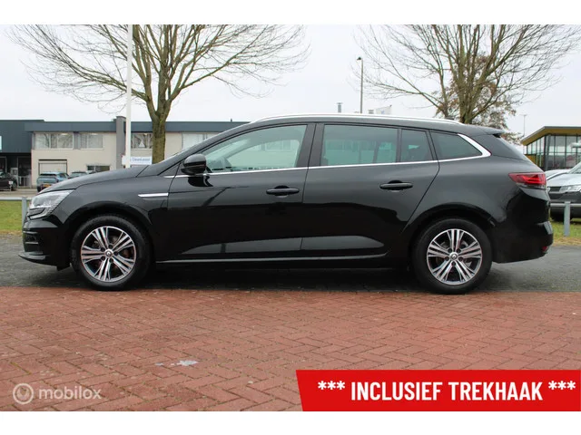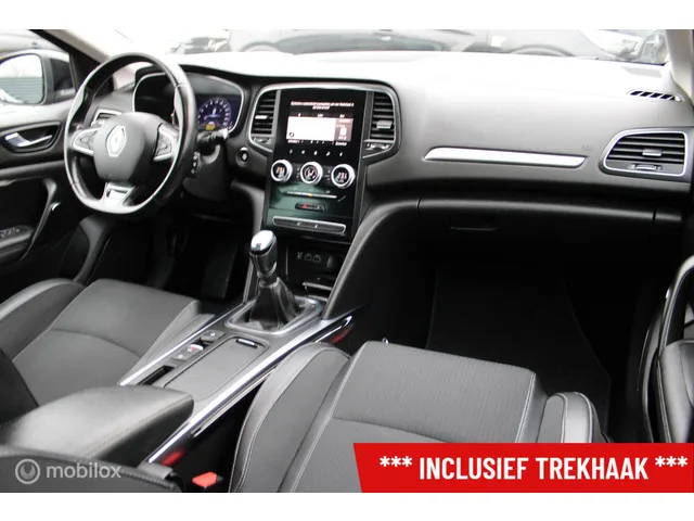 Renault Megane Estate 1.0 TCe 115 PK Intens, Trekhaak, Full Ledverlichting, Pdc voor + achter, Donker glas, Navi, App connect. Kenteken: L-226-SB; Merk: Renault; Model: Megane Estate; APK tot: 25-07-2027; Tellerstand: 95974 KM; Carrosserievorm: Station; Aantal deuren: 5; Brandstofsoort: Benzine; Bouwjaar: 2021; Transmissie: Handgeschakeld; Kleur: zwart Metallic; Bekleding: Leder/Stof; Kleur interieur: zwart; Motorinhoud: 999 cc; Aantal cilinders: 3; Motorcode: H5D C4; Vermogen: 84 kW / 114pk; Ledig gewicht: 1224 kg; Max. trekgewicht: 1300 kg; Aantal zitplaatsen: 5; Verbruik: 5.7 l/100 km; BTW/Marge: BTW aftrekbaar, de prijs is inclusief BTW; Lengte: 463 cm; Breedte: 181 cm; Aantal sleutels: 2; Onderhoudshistorie aanwezig: Ja; Motorrijtuigenbelasting: € 172 - 188 per kwartaal; Emissieklasse: Euro 6. Comfort. Cruise control; Regensensor. Exterieur. Achterruitwisser; Buitenspiegels elektrisch verstelbaar; Buitenspiegels in carrosseriekleur; Chroom delen exterieur; Climate control ...