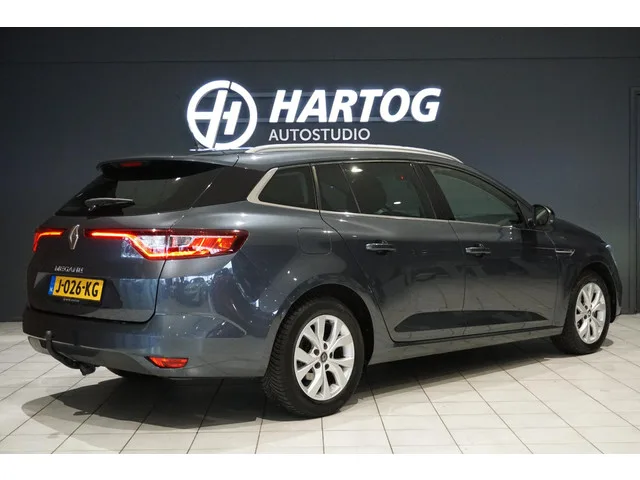 Renault Megane Estate, Origineel Nederlands (NAP), Automaat, Apple Carlay, Parkeersensoren achter, Trekhaak (1700kg), LED dagrijverlichting, Getint glas achter, Keyless entry + start, . 7 versn., Automaat; Modeljaar: 2016; Voorwielaandrijving; 103 kW; 240 Nm; 4 cilinders; 1.330cc; Gewicht: 1.290kg; Laadvermogen: 616kg; GVW: 1.906kg; Max. trekgewicht: 1.700kg; LxB: 463x181cm; Wielbasis: 271cm; 50l tank; 0-100 km/h: 9,9s; Topsnelheid: 199km/u; Stof; 5 zitplaatsen; 5,5 l/100km; 6,5 l/100km; 4,9 l/100km; 145 g/km CO₂; Energielabel B; Euro 6d-TEMP; APK: tot mei 2026; Wegenbelasting: € 199-€ 217p/kwrt; vanaf € 241 p/m (informeer naar de mogelijkheden en voorwaarden); Beschikbare afleverpakketten: Servicepakket 1 (€ 495); Servicepakket 2 (€ 695); Servicepakket 3 (€ 995); J-026-KG