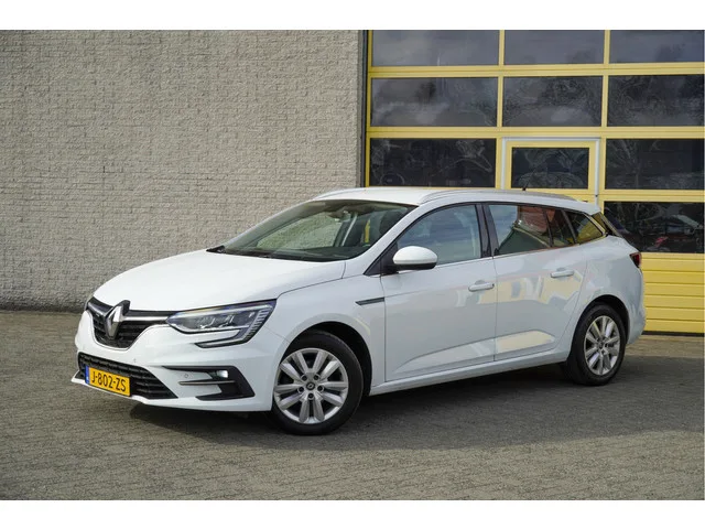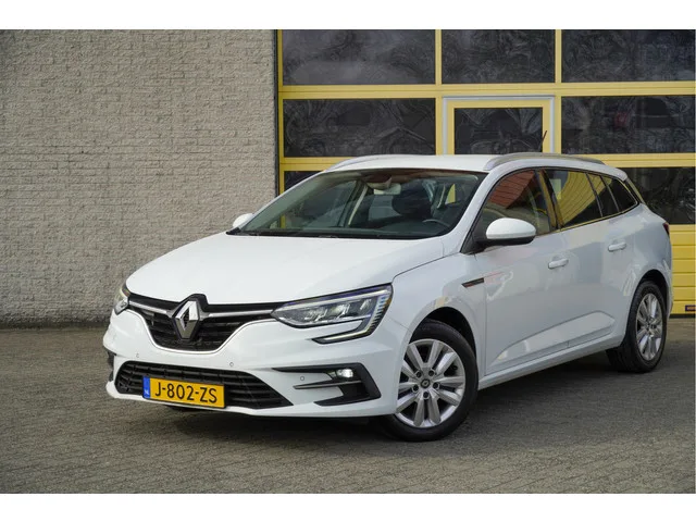 Renault Mégane Estate met de zeer luxe aanwezige opties als Led dagrijverlichting | Led koplampen | Led achterlichten | Led mistlampen | Dynamische knipperlichten | Parkeersensoren | App-Connect | Navigatiesysteem | Climate control | Cruise control | Getint glas. 6 versn., Handgeschakeld; Modeljaar: 2020; Voorwielaandrijving; 85 kW; 220 Nm; 4 cilinders; 1.330cc; Gewicht: 1.254kg; Laadvermogen: 605kg; GVW: 1.859kg; Max. trekgewicht: 1.700kg; LxBxH: 463x181x145cm; Wielbasis: 271cm; 47l tank; 0-100 km/h: 11,0s; Topsnelheid: 195km/u; Interieur: zwart, Stof; 5 zitplaatsen; 5,3 l/100km; 6,5 l/100km; 4,5 l/100km; 136 g/km CO₂; Energielabel B; Euro 6; Dealer onderhouden (onderhoudsboekjes aanwezig); Aantal eigenaren: 2; APK bij aflevering; Wegenbelasting: € 199-€ 217p/kwrt; vanaf € 155 p/m (informeer naar de mogelijkheden en voorwaarden); J-802-ZS