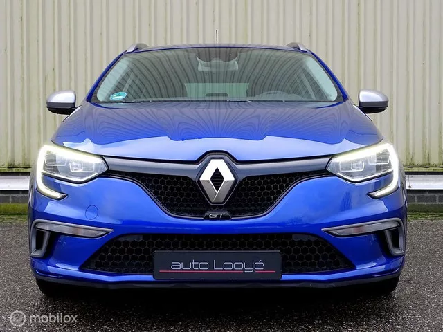 93 (scherpe) foto's op onze website ! Echt een verbluffend nette, ruime en desgewenst vlotte Renault Mégane Estate (Grandtour) voorzien van de koppelrijke 1.6 Turbo 205 PK motor plus de  automatische 7- traps EDC transmissie. Natuurlijk in de juiste kleur, en met de juiste 18 inch Magny Cours velgen. - reeds uitgevoerd : GROOT onderhoud + 4 nieuw gemonteerde (zomer)banden ! - APK vervaldatum 15-09-2026. -  wordt geleverd met een set (losse) Michelin winterbanden. * inruil van uw huidige motor of auto (geen diesel of LPG) is bespreekbaar. * financiering / lease mogelijk (mits acceptatie). Deze Mégane komt uiteraard inclusief de 2 sleutel-kaarten, inclusief de diverse (instructie)boekjes. Het plaatwerk van deze auto is gespoten in het mooie en sportieve Blue Iron metallic (kleurcode RQH) en deze Mégane is in zijn geheel in een exceptioneel keurige staat. Zowel wat betreft het exterieur, het interieur, als ook de techniek. Bij binnenkomst hebben wij deze Mégane laten voorzien van...