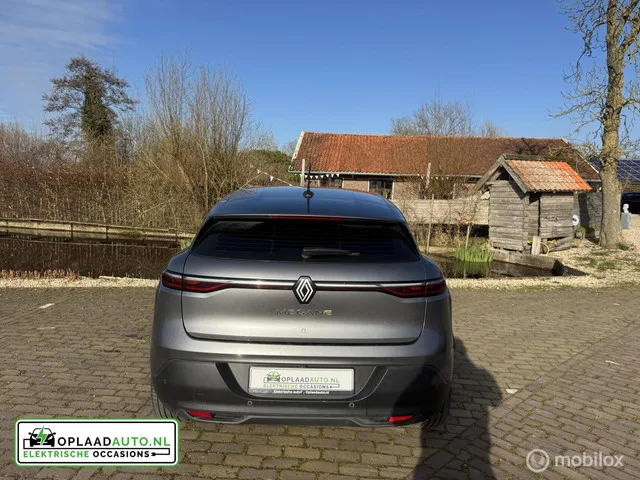 Andere foto's volgen na poetsbeurt! Renault Mégane E-Tech EV60. Renault Mégane E-Tech EV60 Optimum Charge Evolution | Soh 92%. Merk: Renault; Model: Mégane E-Tech; Tellerstand: 101850 KM; Carrosserievorm: Hatchback; Aantal deuren: 5; Brandstofsoort: Elektrisch; Accucapaciteit: 60 kWh; Actieradius: 450 km; Bouwjaar: 2022; Transmissie: Automaat; Kleur: grijs; Vermogen: 96 kW / 131pk; Ledig gewicht: 1611 kg; Aantal zitplaatsen: 5; BTW/Marge: BTW aftrekbaar, de prijs is inclusief BTW; Aantal sleutels: 2. Comfort. Cruise control; Regensensor. Exterieur. Buitenspiegels elektrisch inklapbaar; Buitenspiegels elektrisch verstel- en verwarmbaar; Buitenspiegels in carrosseriekleur; Dakspoiler; Dimlichten automatisch; Keyless entry; LED achterlichten; LED dagrijverlichting; Lichtmetalen velgen 18"; Lichtmetalen velgen 5-spaaks 18"; Parkeersensor achter. Infotainment. Audio installatie; DAB; Multimedia-voorbereiding; Navigatiesysteem; Navigatiesysteem full map; Stuur multifunctioneel. Interieur...