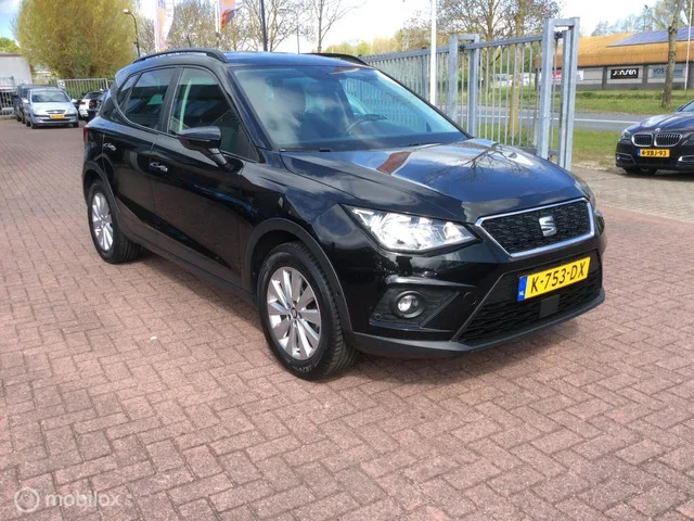 Seat Arona 1.0 TSI Style Business Intense Nav Camera Apple Carpl. Kenteken: K-753-DX; Merk: Seat; Model: Arona; APK tot: 30-11-2026; Tellerstand: 182704 KM; Carrosserievorm: SUV; Aantal deuren: 5; Brandstofsoort: Benzine; Bouwjaar: 2020; Transmissie: Handgeschakeld; Kleur: zwart Metallic; Kleurnaam: Midnight Black Metallic; Bekleding: Stof; Kleur interieur: grijs; Motorinhoud: 999 cc; Aantal cilinders: 3; Motorcode: DLA; Vermogen: 70 kW / 95pk; Ledig gewicht: 1064 kg; Max. trekgewicht: 1000 kg; Aantal zitplaatsen: 5; Verbruik: 4.7 l/100 km; BTW/Marge: BTW aftrekbaar, de prijs is inclusief BTW; Lengte: 415 cm; Breedte: 178 cm; Hoogte: 1532 cm; Aantal sleutels: 2; Onderhoudshistorie aanwezig: Ja; Motorrijtuigenbelasting: € 145 - 158 per kwartaal; Emissieklasse: Euro 6; Velgmaat: 16 inch. Comfort. Boordcomputer; Regensensor. Exterieur. Achterruitwisser; Buitenspiegel rechts; Buitenspiegels elektrisch inklapbaar; Buitenspiegels elektrisch verstelbaar; Buitenspiegels in carrosseriekleur...