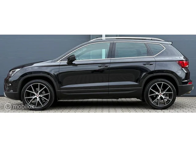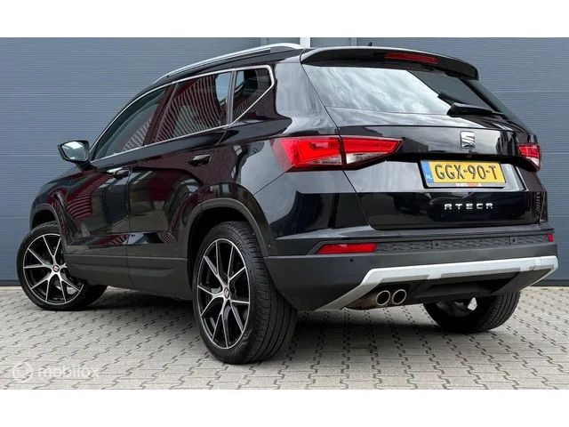 Seat Ateca 1.5 TSI Xcellence Pano.dak/LED/Carplay/Viritual/Clima. Kenteken: GGX-90-T; Merk: Seat; Model: Ateca; APK tot: 30-07-2026; Tellerstand: 115596 KM; Carrosserievorm: SUV; Aantal deuren: 5; Brandstofsoort: Benzine; Bouwjaar: 2019; Transmissie: Automaat; Kleur: zwart Metallic; Motorinhoud: 1498 cc; Aantal cilinders: 4; Motorcode: DAD; Vermogen: 110 kW / 150pk; Ledig gewicht: 1270 kg; Max. trekgewicht: 1600 kg; Aantal zitplaatsen: 5; Verbruik: 6.4 l/100 km; BTW/Marge: Marge, de BTW is niet aftrekbaar; Breedte: 184 cm; Onderhoudshistorie aanwezig: Ja; Motorrijtuigenbelasting: € 199 - 217 per kwartaal; Emissieklasse: Euro 6. Pakket: Upgrade Beats Audio. Audio installatie premium. Pakket: Upgrade Technology. Achteruitrij assistent; Actieve noodgeval assistent; Cruise control adaptief met Stop&Go; Dodehoek detectie; File assistent; Grootlichtassistent; Rijstrooksensor; Verkeersbord detectie. Pakket: Upgrade Winter. Koplampreiniging; Ruitensproeiers/wisserbladen verwarmbaar...