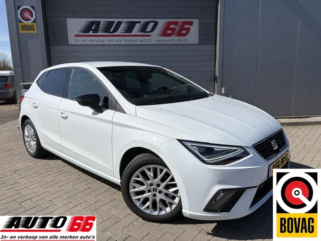 Seat Ibiza 1.0 EcoTSI FR Business Connect. Kenteken: KFG-38-S; Merk: Seat; Model: Ibiza; APK tot: 01-08-2029; Tellerstand: 23333 KM; Carrosserievorm: Hatchback; Aantal deuren: 5; Brandstofsoort: Benzine; Bouwjaar: 2025; Transmissie: Automaat 7; Kleur: wit Metallic; Motorinhoud: 999 cc; Aantal cilinders: 3; Vermogen: 85 kW / 116pk; Ledig gewicht: 1078 kg; Max. trekgewicht: 1100 kg; Aantal zitplaatsen: 5; Verbruik: 5.5 l/100 km; BTW/Marge: Marge, de BTW is niet aftrekbaar; Lengte: 406 cm; Breedte: 178 cm; Aantal sleutels: 2; Onderhoudshistorie aanwezig: Ja; Motorrijtuigenbelasting: € 145 - 158 per kwartaal; Fabrieksgarantie tot: 01-09-2026; Aantal maanden fabrieksgarantie: 12; Emissieklasse: Euro 6. Pakket: Black Pack. Achterspoiler; Side-skirts; Zwarte (glans) exterieur delen. Pakket: Navigatie pakket. Multimedia scherm middel; Navigatiesysteem. Comfort. Boordcomputer; Cruise control; Regensensor. Exterieur. Achterruitwisser; Achterspoiler; Buitenspiegel rechts; Buitenspiegels...