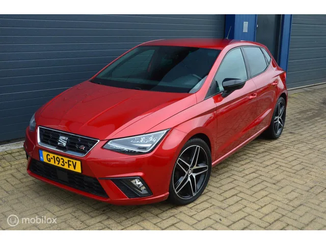 Seat Ibiza 1.0 TSI FR,Led,Cruise. Kenteken: G-193-FV; Merk: Seat; Model: Ibiza; APK tot: 25-07-2026; Tellerstand: 153056 KM; Carrosserievorm: Hatchback; Aantal deuren: 5; Brandstofsoort: Benzine; Bouwjaar: 2019; Transmissie: Handgeschakeld; Kleur: rood; Bekleding: Stof; Motorinhoud: 999 cc; Aantal cilinders: 3; Motorcode: DKL; Vermogen: 70 kW / 95pk; Ledig gewicht: 1034 kg; Max. trekgewicht: 1000 kg; Aantal zitplaatsen: 5; Verbruik: 4.6 l/100 km; BTW/Marge: Marge, de BTW is niet aftrekbaar; Lengte: 406 cm; Breedte: 178 cm; Hoogte: 1444 cm; Aantal sleutels: 2; Onderhoudshistorie aanwezig: Ja; Motorrijtuigenbelasting: € 119 - 129 per kwartaal; Emissieklasse: Euro 6. Pakket: Parkeer pakket. Achteruitrijcamera; Parkeersensor achter; Parkeersensor voor. Comfort. Boordcomputer; Regensensor. Exterieur. Buitenspiegels elektrisch verstelbaar; Buitenspiegels verwarmbaar; Centrale vergrendeling met afstandsbediening; Dimlichten automatisch; Extra getint glas achter; LED achterlichten; LED...