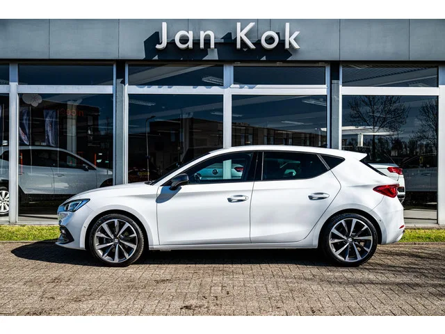 SEAT Leon FR Business Intense van de eerste eigenaar, dealer onderhouden en origineel Nederlands geleverd. . Deze Leon is voorzien van de zuinige en krachtige 1.0 TSi 110pk benzinemotor, gekoppeld aan de soepel schakelende 7-verzets DSG-automaat. Het sportieve voorkomen heeft de Leon te danken, in eerste plaats aan de sportieve accenten die het FR-uitrustingsniveau kenmerkt; antraciet accenten als de grille en spiegelkappen, de optionele 18" bi-color velgen en de dubbele uitlaat aan de achterzijde evenals de signiture koplampen en de Nevada White metallic lakkleur. . Naast dat de Leon is voorzien van gemakken als een botswaarschuwingssyteem, adaptieve cruise control en lane assist is hij ook voorzien van tal van leuke extra's, te noemen: Stoel-/Stuurwielverwarming, parkeersensoren voor-/achterzijde, achteruitrijcamera, Keyless Go-/Entry, climate control, digitaal instrumentarium, elektrisch te bedienen trekhaak, telefoon integratie (Apple Carplay/ Android Auto) en nog veel meer...