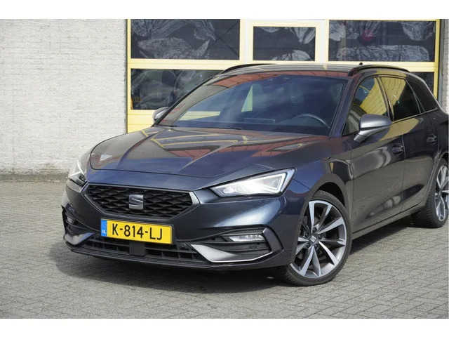 SEAT Leon Sportstourer Automaat met de zeer luxe aanwezige opties als Lichtmetalen velgen 18" | Led dagrijverlichting | Led koplampen | Led achterlichten | Led mistlampen | Dynamische knipperlichten | Parkeersensoren | Elektrische achterklep | Achteruitrijcamera | App-Connect | Navigatiesysteem | Virtual cockpit | Climate control | Cruise control | Sportstoelen | Sportstuur | Verwarmd stuur | Verwarmde voorstoelen | Zwarte hemel | Extra getint glas. 7 versn., Automaat; Modeljaar: 2020; Voorwielaandrijving; 0 kW; 250 Nm; 4 cilinders; 1.498cc; Gewicht: 1.310kg; Laadvermogen: 690kg; GVW: 2.000kg; Max. trekgewicht: 1.500kg; LxBxH: 464x180x145cm; Wielbasis: 269cm; 45l tank; 0-100 km/h: 8,7s; Topsnelheid: 221km/u; Interieur: zwart, Leder/stof; 5 zitplaatsen; 5 l/100km; 6,1 l/100km; 4,3 l/100km; 132 g/km CO₂; Energielabel B; Euro 6; Dealer onderhouden (onderhoudsboekjes aanwezig); Aantal eigenaren: 3; APK bij aflevering; Wegenbelasting: € 199-€ 217p/kwrt; vanaf € 256 p/m (informeer naar de...