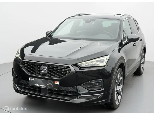 Seat Tarraco 1.5 TSI FR Business Intense PANO|LEDER|MEMORY|. Kenteken: JXV-96-G; Merk: Seat; Model: Tarraco; APK tot: 16-06-2027; Tellerstand: 36632 KM; Carrosserievorm: SUV; Aantal deuren: 5; Brandstofsoort: Benzine; Bouwjaar: 2023; Transmissie: Automaat; Kleur: zwart; Bekleding: Leder; Kleur interieur: zwart; Motorinhoud: 1498 cc; Aantal cilinders: 4; Vermogen: 110 kW / 150pk; Ledig gewicht: 1511 kg; Aantal zitplaatsen: 5; Verbruik: 7.4 l/100 km; BTW/Marge: Marge, de BTW is niet aftrekbaar; Aantal sleutels: 2; Onderhoudshistorie aanwezig: Ja. Comfort. Cruise control; Regensensor. Exterieur. Achterruitverwarming; Achterspoiler; Buitenspiegels elektr. met geheugen; Buitenspiegels elektrisch inklapbaar; Buitenspiegels elektrisch verstelbaar; Buitenspiegels met verlichting; Buitenspiegels verwarmbaar; Centrale vergrendeling met afstandsbediening; Dakrails; Dimlichten automatisch; Elektrisch glazen panorama-dak; Extra getint glas achter; Getint glas; Glazen schuifdak; Keyless entry...
