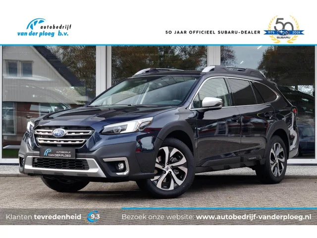 Subaru Outback 2.5 CVT Premium | Eyesight | Trekhaak | Navigatie |. Nu bij ons op voorraad, deze Outback in de complete Premium-uitvoering. De Outback voorzien van Eyesight, trekhaak, lederen bekleding, elektrisch bedienbaar schuif/-kanteldak, Harman Kardon geluidssysteem, 18 inch lichtmetalen velgen, 8-voudige elektrisch verstelbare stoelen voor, LED-verlichting, keyless entry, Apple Carplay en Android Auto. Ideale trekauto in combinatie met continu vierwielaandrijving en een maximaal trekgewicht van 2000kg! Afleveringskosten €595,-. Algemene gegevens. Tellerstand: 45721 KM. Carrosserievorm: Station. Aantal deuren: 5. Brandstofsoort: Benzine. Bouwjaar: 2021. Transmissie: Automaat. Kleur: Blauw Metallic. Kleurnaam: Dark Blue Pearl. Interieur: Zwart. Bekleding: Leder. Onderhoudshistorie aanwezig: Ja. Technische gegevens. Motorinhoud: 2498 cc. Aantal cilinders: 4. Vermogen: 129 kW / 176pk. Koppel: 235Nm. Ledig gewicht: 1582 kg. Max. trekgewicht: 2000 kg. Acceleratie (0-100 km/h): 10.2...