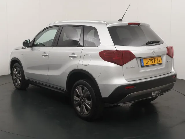 Suzuki Vitara 1.0 Boosterjet Select Automaat. Kenteken: J-797-JJ; Merk: Suzuki; Model: Vitara; APK tot: 26-08-2026; Tellerstand: 96594 KM; Carrosserievorm: SUV; Aantal deuren: 5; Brandstofsoort: Benzine; Bouwjaar: 2020; Transmissie: Automaat; Kleur: grijs Metallic; Motorinhoud: 998 cc; Aantal cilinders: 3; Motorcode: K10C; Vermogen: 82 kW / 112pk; Ledig gewicht: 1105 kg; Max. trekgewicht: 1200 kg; Aantal zitplaatsen: 5; Verbruik: 5.7 l/100 km; BTW/Marge: BTW aftrekbaar, de prijs is inclusief BTW; Lengte: 417 cm; Breedte: 178 cm; Hoogte: 1595 cm; Aantal sleutels: 2; Onderhoudshistorie aanwezig: Ja; Motorrijtuigenbelasting: € 145 - 158 per kwartaal; Emissieklasse: Euro 6. Comfort. Boordcomputer; Cruise control. Exterieur. Buitenspiegels elektrisch verstelbaar; Buitenspiegels in carrosseriekleur; Buitenspiegels verwarmbaar; Centrale vergrendeling met afstandsbediening; Dakrails; Extra getint glas achter; Getint glas; Lichtmetalen velgen 17"; Metaalkleur; Mistlampen voor; Sportvelgen. ...