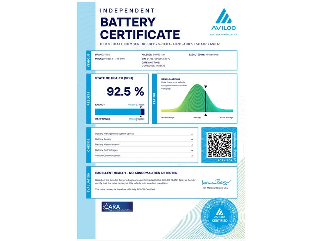 Tesla Model 3 Long Range AWD 75 kWh SOH 92.5 %|