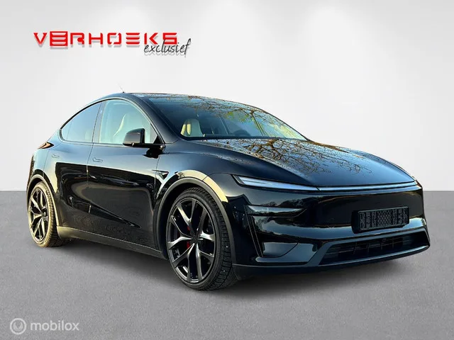 Tesla Model Y Performance AWD 82 kWh Enhanced BTW!! Merk: Tesla; Model: Model Y; Tellerstand: 8450 KM; Carrosserievorm: SUV; Aantal deuren: 5; Brandstofsoort: Elektrisch; Geschikt voor snelladen: Ja; Bouwjaar: 2025; Transmissie: Automaat; Kleur: zwart Metallic; Bekleding: Leder; Kleur interieur: wit; Interieurnaam: Black & White; Vermogen: 461 kW / 628pk; Max. trekgewicht: 1600 kg; BTW/Marge: BTW aftrekbaar, de prijs is inclusief BTW; Aantal sleutels: 2; Onderhoudshistorie aanwezig: Dealer onderhouden; Velgmaat: 21 inch. Comfort. Cruise control; Regensensor. Exterieur. Achterspoiler; All Wheel Drive Performance; Autopilot; Buitenspiegel rechts; Buitenspiegels elektrisch verstelbaar; Buitenspiegels verwarmbaar; CCS laden; Centrale vergrendeling; Getint glas; Metaalkleur; Panoramadak; Rode remklauwen; Sportvelgen. Infotainment. Navigatiesysteem; Stuur multifunctioneel. Interieur. Achterbank in delen neerklapbaar; Airco; Audio Installatie Premium; Elektrisch bedienbare achterklep...