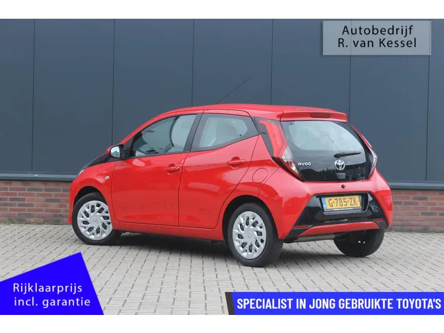 Leuke complete Aygo van 31-12-2019. Wij leveren deze Aygo af inclusief een nieuwe onderhoudsbeurt, dit is bij de prijs inbegrepen. Toyota Aygo 1.0 VVT-i x-play I Camera I Carplay I NL-auto. Kenteken: G-785-ZK; Merk: Toyota; Model: Aygo; APK tot: 31-12-2027; Tellerstand: 59945 KM; Carrosserievorm: Hatchback; Aantal deuren: 5; Brandstofsoort: Benzine; Bouwjaar: 2019; Transmissie: Handgeschakeld; Kleur: rood; Motorinhoud: 998 cc; Aantal cilinders: 3; Motorcode: 1KR; Vermogen: 53 kW / 72pk; Ledig gewicht: 830 kg; Aantal zitplaatsen: 4; Verbruik: 3.8 l/100 km; BTW/Marge: BTW aftrekbaar, de prijs is inclusief BTW; Lengte: 347 cm; Breedte: 162 cm; Hoogte: 1460 cm; Motorrijtuigenbelasting: € 70 - 76 per kwartaal; Emissieklasse: Euro 6. Pakket: Multimedia pack. Apple Carplay/Android Auto; DAB; Multimedia-voorbereiding. Exterieur. Buitenspiegels elektrisch verstel- en verwarmbaar; Buitenspiegels in carrosseriekleur; Centrale vergrendeling met afstandsbediening; LED achterlichten; LED...