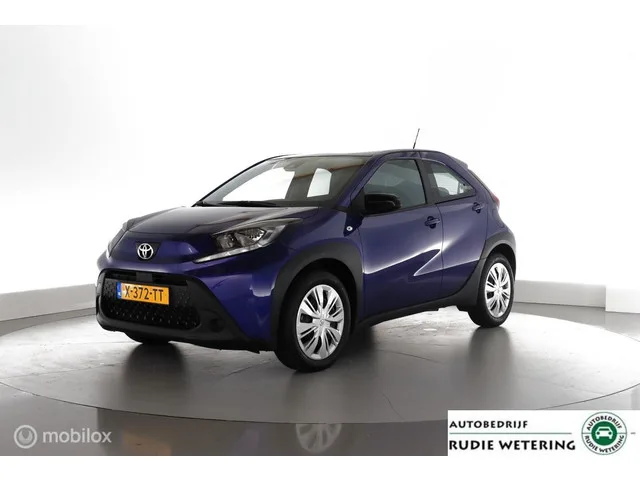 Toyota Aygo X 1.0 VVT-i MT Play NLauto|cam|dab|applecarplay|acc. Kenteken: X-372-TT; Merk: Toyota; Model: Aygo X; APK tot: 13-02-2028; Tellerstand: 7689 KM; Carrosserievorm: Hatchback; Aantal deuren: 5; Brandstofsoort: Benzine; Bouwjaar: 2024; Transmissie: Handgeschakeld 5-Versnellingen; Kleur: blauw Metallic; Kleurnaam: Juniper Blue Metallic; Bekleding: Stof; Motorinhoud: 998 cc; Aantal cilinders: 3; Motorcode: 1KR; Vermogen: 53 kW / 72pk; Ledig gewicht: 920 kg; Aantal zitplaatsen: 4; Verbruik: 4.8 l/100 km; BTW/Marge: BTW aftrekbaar, de prijs is inclusief BTW; Lengte: 370 cm; Breedte: 174 cm; Hoogte: 1525 cm; Aantal sleutels: 2; Onderhoudshistorie aanwezig: Ja; Motorrijtuigenbelasting: € 92 - 99 per kwartaal; Fabrieksgarantie tot: 13-02-2027; Aantal maanden fabrieksgarantie: 36; Emissieklasse: Euro 6; Bandenmaat voor: 175/65/17; Bandemaat achter: 175/65/17; Wielbasis: 2430 mm. Comfort. Cruise control. Exterieur. Achterruitverwarming; Achterruitwisser; Buitenspiegels elektrisch...