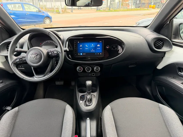 RIJKLAARPRIJS | NL Auto | 12 Maanden BOVAG Garantie | APK 06 – 2029 | 1e eigenaar. Scherpe prijs! Teller rapport en Boekjes aanwezig! Met een auto als deze Toyota Aygo X komt u absoluut goed voor de dag. De aandrijving van deze Toyota wordt verzorgd door een driecilinder motor en een automatische transmissie. Ook is de auto voorzien van: LED-dagrijverlichting en in delen neerklapbare achterbank. Afstand schatten bij het achteruitrijden? Niet nodig. U weet het precies, dankzij de achteruitrijcamera. Adaptive cruise control houdt de ingestelde snelheid vast en houdt afstand tot het voertuig voor u. Met DAB-radio heeft u onderweg veel keuze in zenders en genres. Uw oren worden verwend met het perfecte audiosysteem. Aan boord van deze Toyota Aygo X is een achteropkomend verkeer waarschuwing voor extra veiligheid. Met één druk op de knop blaast de airconditioning een koele bries door het interieur. Ook lederen stuur en centrale deurvergrendeling met afstandsbediening horen tot de...