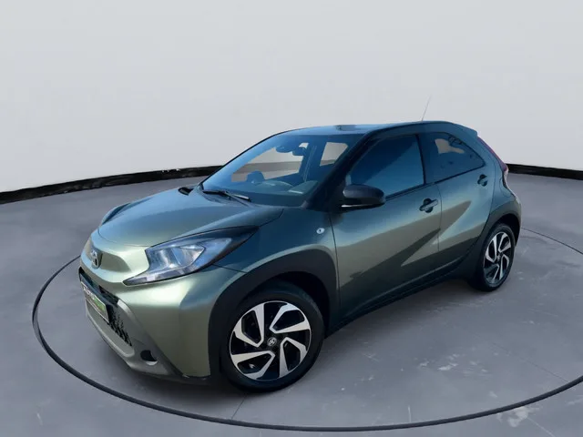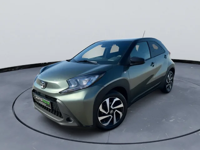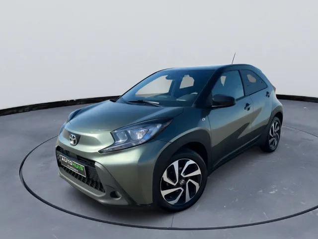 Nette en moderne Toyota Aygo X Pulse uit 2023, uitgevoerd in de opvallende kleur Cardamon Green met zwart dak. Deze compacte en zuinige auto is voorzien van een comfortabele automatische transmissie (CVT) en is ideaal voor zowel stadsverkeer als langere ritten. Algemene gegevens. Bouwjaar: 2023. Carrosserie: Hatchback (5-deurs). Motor: 1.0 VVT-i benzine (53 kW / 72 pk). Transmissie: Automaat (CVT). Aandrijving: Voorwielaandrijving (4x2). Kleur en uitvoering. Exterieur: Cardamon Green / Black Mica (two-tone). Bekleding: Stof (Mid+ uitvoering). Belangrijkste opties en uitrusting. Automatische transmissie (CVT). Airconditioning (handmatig). Adaptieve cruise control (ACC). Lane assist (LTA). Verkeersbordherkenning. Achteruitrijcamera. LED dagrijverlichting. Mistlampen voor (halogeen). 17 inch lichtmetalen velgen. Elektrisch verstelbare en verwarmbare buitenspiegels. Privacy glass achter. Multimedia systeem met 8 inch touchscreen en DAB radio. Bluetooth en USB-aansluiting...
