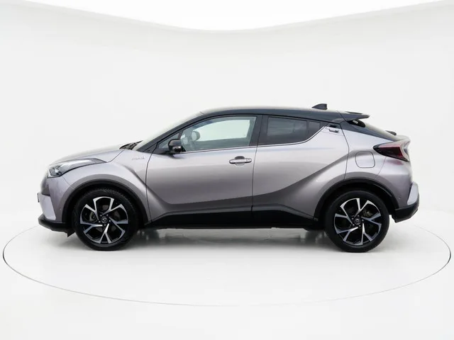 Toyota C-HR 1.8 Hybrid Style Ultimate | Zwart leder | JBL audio | 18 inch LMV. Kenteken: G-306-KH; Merk: Toyota; Model: C-HR; APK tot: 13-03-2028; Tellerstand: 77869 KM; Carrosserievorm: SUV; Aantal deuren: 5; Brandstofsoort: Hybride (Elektrisch/Benzine); Bouwjaar: 2019; Transmissie: Automaat; Kleur: grijs Metallic; Kleurnaam: Silver Knockout metallic; Bekleding: Leder; Kleur interieur: zwart; Motorinhoud: 1798 cc; Aantal cilinders: 4; Motorcode: 2ZR; Vermogen: 90 kW / 123pk; Ledig gewicht: 1395 kg; Max. trekgewicht: 725 kg; Aantal zitplaatsen: 5; Verbruik: 3.8 l/100 km; BTW/Marge: Marge, de BTW is niet aftrekbaar; Lengte: 436 cm; Breedte: 180 cm; Hoogte: 1555 cm; Aantal sleutels: 2; Onderhoudshistorie aanwezig: Ja; Motorrijtuigenbelasting: € 226 - 247 per kwartaal; Emissieklasse: Euro 6. Comfort. Regensensor. Exterieur. Buitenspiegels elektrisch inklapbaar; Buitenspiegels elektrisch verstel- en verwarmbaar; Buitenspiegels in carrosseriekleur; Dimlichten automatisch; Extra getint...