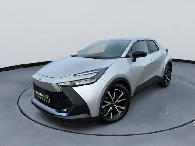 Toyota C-HR 1.8 Hybrid Flow. Algemene informatie. Merk: Toyota. Model: C-HR. Uitvoering: Hybrid Flow. Bouwjaar: 2023. Carrosserie: SUV, 5-deurs. Kleur: Silver Metallic. Aandrijving: Voorwielaandrijving. Transmissie: Automaat (CVT). Motor en techniek. Hybride aandrijflijn (1.8L, 90 kW). Continu variabele transmissie (CVT). Uitrusting en opties. 18 inch lichtmetalen velgen (225/55 R18). LED koplampen met grootlichtassistent. LED dagrijverlichting. LED mistlampen voor. LED achterlichten. Elektrisch inklapbare buitenspiegels met verwarming en dodehoekdetectie. Privacy glass achter. Regensensor. Voorruitverwarming (de-icer). Interieur en comfort. Sportstoelen voor. Stoelverwarming voor. Stuurwiel verwarmd en in hoogte/verstelbaar. Automatische airconditioning (dual zone). Elektrische ramen voor en achter. Keyless entry en start (smart key). 12.3 inch digitaal instrumentenpaneel. Multifunctioneel stuurwiel. Veiligheid en assistentie. Adaptive cruise control (full speed range). Lane Trace...