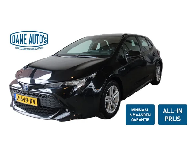 Toyota Corolla 1.8 Hybrid Business | PARKEERSENSOREN | NAVI | CARPLAY - RIJKLAARPRIJS. Kenteken: Z-649-KV; Merk: Toyota; Model: Corolla; APK tot: 26-04-2026; Tellerstand: 74094 KM; Carrosserievorm: Hatchback; Aantal deuren: 5; Brandstofsoort: Hybride (Elektrisch/Benzine); Bouwjaar: 2020; Transmissie: Automaat; Kleur: zwart Metallic; Bekleding: Stof; Kleur interieur: zwart; Motorinhoud: 1798 cc; Aantal cilinders: 4; Motorcode: 2ZR; Vermogen: 90 kW / 123pk; Ledig gewicht: 1260 kg; Max. trekgewicht: 750 kg; Aantal zitplaatsen: 5; Verbruik: 4.5 l/100 km; BTW/Marge: Marge, de BTW is niet aftrekbaar; Lengte: 437 cm; Breedte: 179 cm; Hoogte: 1435 cm; Aantal sleutels: 2; Onderhoudshistorie aanwezig: Ja; Motorrijtuigenbelasting: € 199 - 217 per kwartaal; Emissieklasse: Euro 6. Bijzondere opties & accessoires. Achteruitrijcamera; Airco automatisch; All season banden; Apple Carplay/Android Auto; Armsteun voor; Bestuurdersstoel in hoogte verstelbaar; Buitenspiegels elektrisch inklapbaar; Cruise...