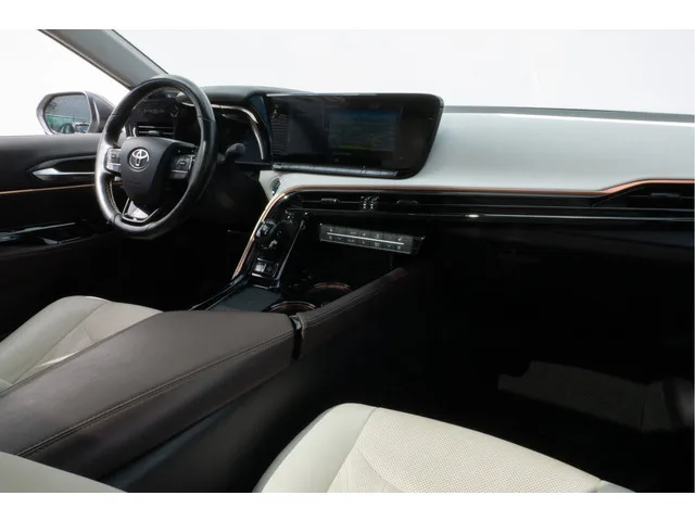 Topprestaties zonder emissies: de Toyota Mirai is een door waterstof aangedreven auto zonder compromissen. Geruisloos genieten tegen lage kosten? Dan is deze waterstofmotor iets voor u! De krachtige motor geeft deze Toyota uitstekende prestaties. De hoogwaardige, lederen bekleding benadrukt de kwaliteit van deze auto. Op koude dagen voelt u zich snel behaaglijk op de verwarmbare stoelen. Voor en achter: iedereen dezelfde luxe. Vandaar de verwarmde achterbank. Ook 20 inch lichtmetalen velgen, Full LED koplampen, donker getint glas achter, LED-achterlichten en verstelbare lendensteunen horen tot de voorzieningen op deze auto. Het gebruik van de 360 graden camera op deze auto vergemakkelijkt het parkeren aanzienlijk, vooral in krappe ruimtes. Adaptive cruise control is een comfortabele en veilige optie. Het systeem reguleert de snelheid en houdt automatisch afstand tot uw voorligger. Dankzij de spraaksturing bedient u verschillende functies zonder uw handen van het stuur te halen....