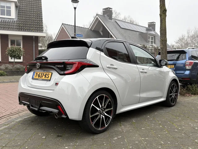 De Yaris wordt op 28 maart verwacht. Direct één van de meest complete uitvoeringen die je kunt vinden. Zeer complete Toyota Yaris 1.5 Hybrid GR Sport met Premium Pack. Highlights. ✔ GR Sport uitvoering. ✔ Premium Pack, bestaande uit: • JBL premium audio installatie. • Head-Up Display (HUD). • Panoramadak. • Stuurwielverwarming. ✔ 18 inch lichtmetalen velgen. ✔ Blind Spot Monitoring. ✔ Keyless entry & start. ✔ LED. ✔ Parkeersensoren voor en achter. ✔ Achteruitrijcamera. ✔ Stoelverwarming. De prijs is rijklaar. De Toyota Yaris beschikt over fabrieksgarantie tot 13-12-2032. De eerstvolgende onderhoudsbeurt staat gepland voor juli 2026. Modeljaar: 2022; Voorwielaandrijving; 85 kW; 120 Nm; 3 cilinders; 1.490cc; Gewicht: 1.105kg; Laadvermogen: 510kg; GVW: 1.615kg; Max. trekgewicht: 450kg; LxBxH: 395x175x151cm; Wielbasis: 256cm; 36l tank; 0-100 km/h: 9,7s; Topsnelheid: 175km/u; 5 zitplaatsen; 4,3 l/100km; 99 g/km CO₂; Energielabel A; Euro 6; Dealer onderhouden (onderhoudsboekjes aanwezig);...