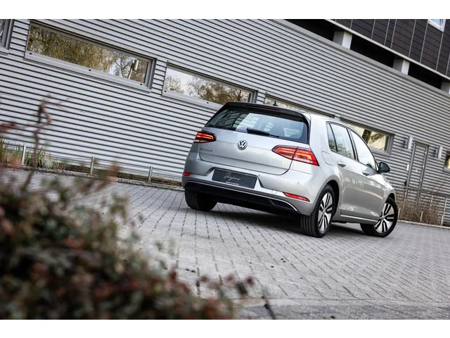 | 100% elektrisch | Snelladen | Facelift model | Multimediasysteem | Apple CarPlay | Android Auto | DAB+ | Navigatiesysteem | LED koplampen | VW App | Parkpilot | Adaptive Cruise control | Lane Assist | Fileassistent | Frontcamera | Grootlichtassistent | Voorruit verwarming | Dynamische richtingaanwijzers | Origineel Nederlands | 2018 | 118.905 km | EUR 10.850 |. Volkswagen e-Golf 100% elektrisch. Dat is het mooie aan de Volkswagen e-Golf. Hij oogt als een reguliere Golf, maar onderhuids is het een volledig elektrische auto. Niet de futuristische vormen en het design van sommige Aziatische merken, maar gewoon hoe je een graag auto ziet. Overigens is deze e-Golf verre van standaard, want de LED koplampen en de blauwe elementen, de lichtmetalen velgen en het de prachtige grijze kleur – Tungsten Silber - maken dit met recht een e-Golf met uitstraling. Ik stap achter het fraaie sportstuurwiel met de blauwe stiksels die een e-Golf kenmerkt. De middenconsole is voorzien van een groot...