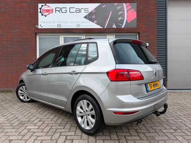 Nette auto! Leuke Golf Sportsvan DSG voorzien van schuifdak, parkeersensoren voor en achter, navigatie, lichtmetalen velgen, multifunctioneel stuur, airco, adaptive cruise control en trekhaak. Voorwielaandrijving; 92 kW; 4 cilinders; 1.395cc; Gewicht: 1.283kg; Laadvermogen: 617kg; GVW: 1.900kg; Max. trekgewicht: 1.400kg; Wielbasis: 269cm; 0-100 km/h: 9,9s; Topsnelheid: 200km/u; Interieurkleur: zwart; 5 zitplaatsen; 5,2 l/100km; 6,2 l/100km; 4,5 l/100km; 121 g/km CO₂; Energielabel B; Euro 6; Onderhoudsboekjes aanwezig; APK: tot aug. 2026; Huisgarantie; 1 maand garantie; Wegenbelasting: € 199-€ 217p/kwrt; vanaf € 315 p/m (informeer naar de mogelijkheden en voorwaarden); TF-898-L