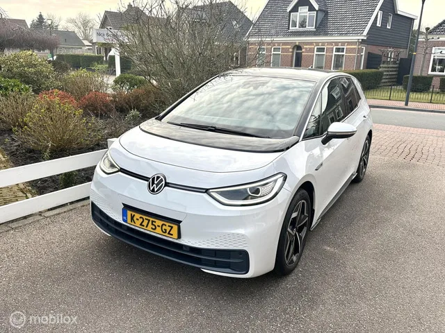Volkswagen ID.3 First Plus 58 kWh SFEERVERLICHTING ACHTERUITRIJ CAMERA ADAPTIEVE CRUISE CONTROLE CARPLAY DEALER ONDERHOUDEN!! Kenteken: K-275-GZ; Merk: Volkswagen; Model: ID.3; APK tot: 02-01-2027; Tellerstand: 135797 KM; Carrosserievorm: Hatchback; Aantal deuren: 5; Brandstofsoort: Elektrisch; Accucapaciteit: 58 kWh; Actieradius: 424 km; Bouwjaar: 2020; Transmissie: Automaat; Kleur: wit; Motorcode: EBJ; Vermogen: 150 kW / 204pk; Ledig gewicht: 1694 kg; Aantal zitplaatsen: 5; BTW/Marge: BTW aftrekbaar, de prijs is inclusief BTW; Lengte: 426 cm; Breedte: 181 cm; Aantal sleutels: 2; Onderhoudshistorie aanwezig: Ja; Motorrijtuigenbelasting: € 214 - 234 per kwartaal; Emissieklasse: Euro Z. Comfort. Regensensor. Exterieur. Achterruitwisser; Andere dakkleur; Buitenspiegels elektrisch inklapbaar; Buitenspiegels elektrisch verstel- en verwarmbaar; Centrale vergrendeling met afstandsbediening; Extra getint glas achter; Getint glas; Keyless entry; LED achterlichten; LED dagrijverlichting...