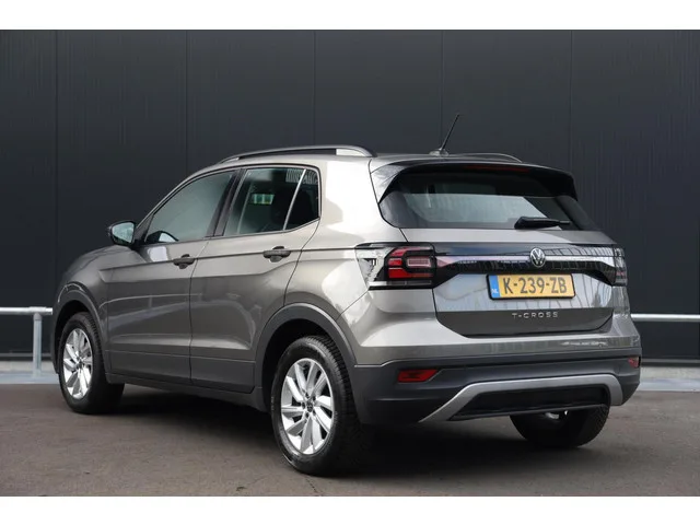 Volkswagen T-Cross 1.0 TSI 95pk Life Navigatie Airco Adaptieve Cruise 16 inch DAB+ CarPlay NL-Auto. Kenteken: K-239-ZB; Merk: Volkswagen; Model: T-Cross; APK tot: 28-04-2027; Tellerstand: 114623 KM; Carrosserievorm: SUV; Aantal deuren: 5; Brandstofsoort: Benzine; Bouwjaar: 2021; Transmissie: Handgeschakeld; Kleur: grijs Metallic; Bekleding: Stof; Kleur interieur: zwart; Motorinhoud: 999 cc; Aantal cilinders: 3; Motorcode: DLA; Vermogen: 70 kW / 95pk; Ledig gewicht: 1167 kg; Max. trekgewicht: 1000 kg; Aantal zitplaatsen: 5; Verbruik: 4.8 l/100 km; BTW/Marge: BTW aftrekbaar, de prijs is inclusief BTW; Lengte: 411 cm; Breedte: 176 cm; Aantal sleutels: 2; Onderhoudshistorie aanwezig: Ja; Motorrijtuigenbelasting: € 172 - 188 per kwartaal; Emissieklasse: Euro 6. Comfort. Boordcomputer. Exterieur. Buitenspiegels elektrisch inklapbaar; Buitenspiegels elektrisch verstel- en verwarmbaar; Buitenspiegels elektrisch verstelbaar; Buitenspiegels in carrosseriekleur; Buitenspiegels verwarmbaar...