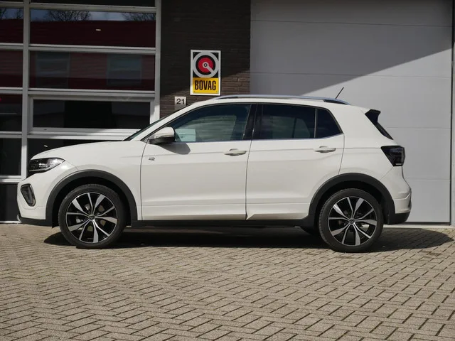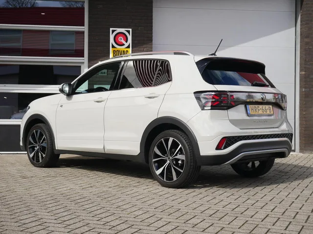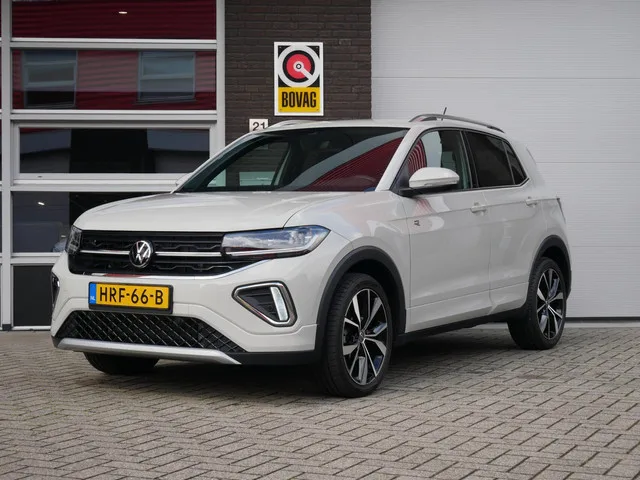 Volkswagen T-Cross 1.5 TSI R-Line Edition Camera| ACC| Keyless| Ascot Grey. Kenteken: HRF-66-B; Merk: Volkswagen; Model: T-Cross; APK tot: 26-06-2028; Tellerstand: 11225 KM; Carrosserievorm: SUV; Aantal deuren: 5; Brandstofsoort: Benzine; Bouwjaar: 2024; Transmissie: Automaat; Kleur: grijs; Kleurnaam: Ascot Grey; Bekleding: Stof; Kleur interieur: zwart; Motorinhoud: 1498 cc; Aantal cilinders: 4; Vermogen: 110 kW / 150pk; Ledig gewicht: 1226 kg; Max. trekgewicht: 1200 kg; Aantal zitplaatsen: 5; Verbruik: 6.1 l/100 km; BTW/Marge: Marge, de BTW is niet aftrekbaar; Aantal sleutels: 2; Onderhoudshistorie aanwezig: Ja; Motorrijtuigenbelasting: € 172 - 188 per kwartaal; Emissieklasse: Euro 6. Pakket: Multimedia pakket plus. Audio installatie; Navigatiesysteem full map; Spraakbediening. Comfort. Boordcomputer; Regensensor. Exterieur. Achterspoiler; Buitenspiegels elektrisch inklapbaar; Buitenspiegels elektrisch verstel- en verwarmbaar; Chroom delen exterieur; Dakrails; Dimlichten...