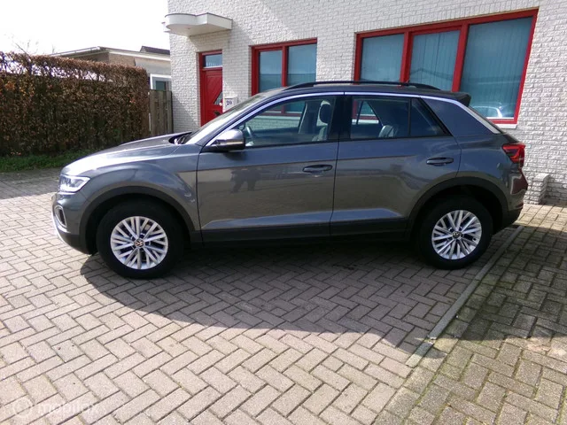 Volkswagen T-Roc 1.0 TSI Life CAMERA/NAVI/CRUISE/DIG COCKPIT. Kenteken: R-764-HB; Merk: Volkswagen; Model: T-Roc; APK tot: 02-09-2026; Tellerstand: 28945 KM; Carrosserievorm: SUV; Aantal deuren: 5; Brandstofsoort: Benzine; Bouwjaar: 2022; Transmissie: Handgeschakeld 6; Kleur: grijs Metallic; Bekleding: Stof; Kleur interieur: zwart; Motorinhoud: 999 cc; Aantal cilinders: 3; Motorcode: DLA; Vermogen: 81 kW / 110pk; Ledig gewicht: 1201 kg; Max. trekgewicht: 1300 kg; Aantal zitplaatsen: 5; Verbruik: 5.2 l/100 km; BTW/Marge: Marge, de BTW is niet aftrekbaar; Lengte: 424 cm; Breedte: 182 cm; Aantal sleutels: 2; Onderhoudshistorie aanwezig: Ja; Motorrijtuigenbelasting: € 172 - 188 per kwartaal; Emissieklasse: Euro 6. Comfort. Regensensor. Exterieur. Buitenspiegels elektrisch inklapbaar; Buitenspiegels elektrisch verstel- en verwarmbaar; Centrale vergrendeling met afstandsbediening; Dakrails; Dimlichten automatisch; LED achterlichten; LED koplampen; Lichtmetalen velgen 16"; Metaalkleur...