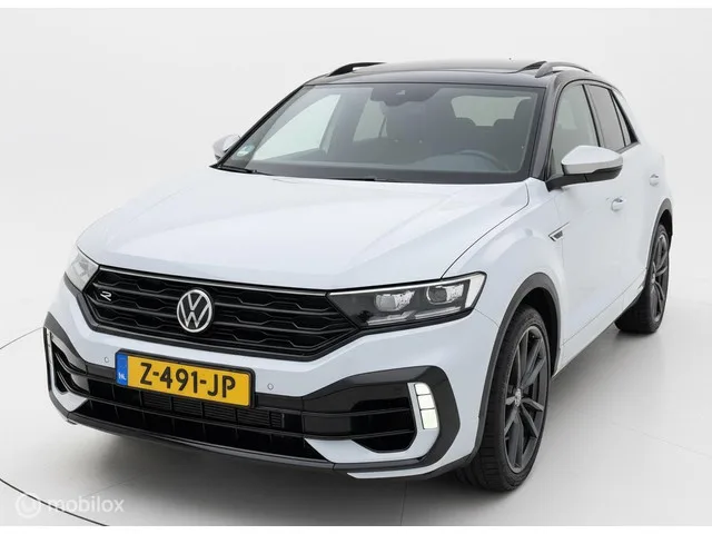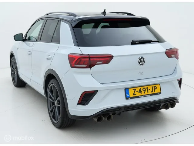 Volkswagen T-Roc 2.0 TSI 4Motion R PANO|AKRA|BEATS||ACC|. Kenteken: Z-491-JP; Merk: Volkswagen; Model: T-Roc; APK tot: 31-10-2027; Tellerstand: 75790 KM; Carrosserievorm: SUV; Aantal deuren: 5; Brandstofsoort: Benzine; Bouwjaar: 2020; Transmissie: Automaat; Kleur: wit; Bekleding: Alcantara; Kleur interieur: zwart; Motorinhoud: 1984 cc; Aantal cilinders: 4; Motorcode: DNU; Vermogen: 221 kW / 301pk; Ledig gewicht: 1472 kg; Max. trekgewicht: 1700 kg; Aantal zitplaatsen: 5; Verbruik: 7.7 l/100 km; BTW/Marge: Marge, de BTW is niet aftrekbaar; Lengte: 424 cm; Breedte: 182 cm; Aantal sleutels: 2; Onderhoudshistorie aanwezig: Ja; Motorrijtuigenbelasting: € 253 - 276 per kwartaal; Emissieklasse: Euro 6. Comfort. Boordcomputer; Regensensor. Exterieur. Achterruitwisser; Buitenspiegel(s) automatisch dimmend; Buitenspiegels elektrisch inklapbaar; Buitenspiegels elektrisch verstel- en verwarmbaar; Buitenspiegels met verlichting; Buitenspiegels verwarmbaar; Centrale vergrendeling met...