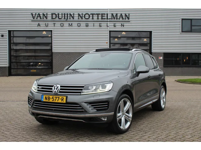 Zeer nette, origineel Nederlands geleverde Volkswagen Touareg 3.0 TDI R-Line uit 2017 met 152.000 KM N.A.P. 2 sleutels, alle boekjes en historie aanwezig. 8 versn., Automaat; Modeljaar: 2014; 4WD; 193 kW; 580 Nm; 6 cilinders; 2.967cc; Gewicht: 2.085kg; Laadvermogen: 795kg; GVW: 2.880kg; Max. trekgewicht: 3.500kg; LxBxH: 490x197x175cm; Wielbasis: 289cm; 85l tank; 0-100 km/h: 7,3s; Topsnelheid: 225km/u; Interieurkleur: zwart; 5 zitplaatsen; 6,6 l/100km; 7,7 l/100km; 6 l/100km; 174 g/km CO₂; Energielabel F; Euro 6; Onderhoudsboekjes aanwezig; Aantal eigenaren: 2; APK: tot sep. 2026; 2 sleutels (2 handzenders); Huisgarantie 3 maanden; 3 maanden garantie; 5.000 km garantie; op de motor; Wegenbelasting: € 766-€ 805p/kwrt; vanaf € 625 p/m (informeer naar de mogelijkheden en voorwaarden); NB-577-R