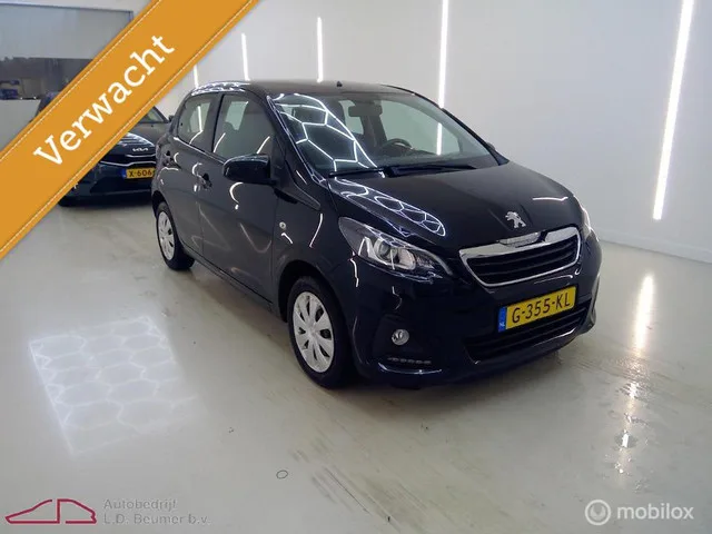 Peugeot 108 1.0 e-VTi Active *NL, AIRCO, 1e EIG, RIJKLAARPRIJS!*. Kenteken: G-355-KL; Merk: Peugeot; Model: 108; APK tot: 17-10-2027; Tellerstand: 84693 KM; Carrosserievorm: Hatchback; Aantal deuren: 5; Brandstofsoort: Benzine; Bouwjaar: 2019; Transmissie: Handgeschakeld; Kleur: zwart; Motorinhoud: 998 cc; Aantal cilinders: 3; Motorcode: 1KR; Vermogen: 53 kW / 72pk; Ledig gewicht: 815 kg; Aantal zitplaatsen: 4; Verbruik: 3.7 l/100 km; BTW/Marge: Marge, de BTW is niet aftrekbaar; Lengte: 348 cm; Breedte: 162 cm; Hoogte: 1460 cm; Aantal sleutels: 2; Onderhoudshistorie aanwezig: Ja; Motorrijtuigenbelasting: € 70 - 76 per kwartaal; Emissieklasse: Euro 6. Comfort. Boordcomputer. Exterieur. Achterruitwisser; Buitenspiegels in carrosseriekleur; Centrale vergrendeling met afstandsbediening; LED dagrijverlichting. Infotainment. Audio installatie; DAB; Stuur multifunctioneel. Interieur. Achterbank in delen neerklapbaar; Airco; Bestuurdersstoel in hoogte verstelbaar; Elektrische ramen voor...