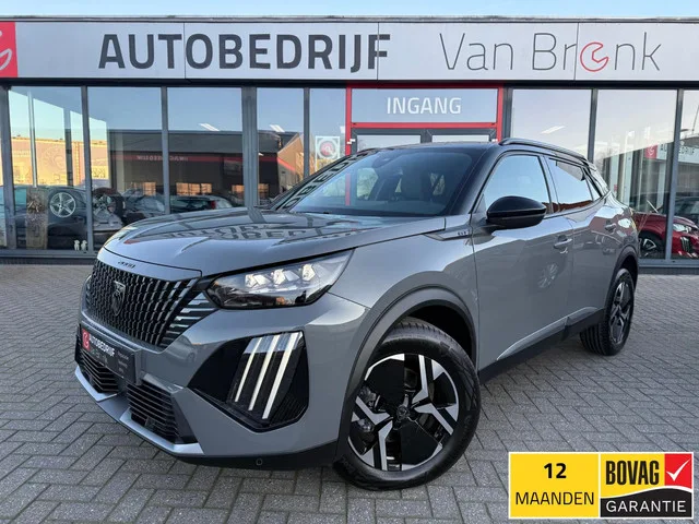 -Inruil mogelijk-. Peugeot 2008 1.2 Hybrid 136PK GT | Achteruitrijcamera | LED. Apple Carplay / Android Auto. Nu inclusief 12 maanden BOVAG garantie! Meer informatie: Transmissie: 6 versnellingen, Automaat; Voorwielaandrijving; Bandenmaat: 215/60 R17; Vermogen: 100 kW (136 PK); Aantal cilinders: 3; Motorinhoud: 1.199 cc; Ledig gewicht: 1.272 kg; GVW: 1.272 kg; Max. trekgewicht: 1.100 kg (ongeremd 685 kg); LxBxH: 430 x 177 x 153 cm; Wielbasis: 261 cm; Acceleratie (0-100): 8,3 s; Topsnelheid: 206 km/u; Interieurkleur: Donkergrijs; 5 zitplaatsen; Gemiddeld brandstofverbruik: 4,9 l/100km (1 op 20,4); APK gekeurd tot mrt. 2029; Schadevrij; 2 sleutels (2 handzenders); Motorrijtuigenbelasting: € 199 - € 217 per kwartaal; vanaf € 511 p/m (financial lease, 72 maanden); informeer naar de mogelijkheden en voorwaarden