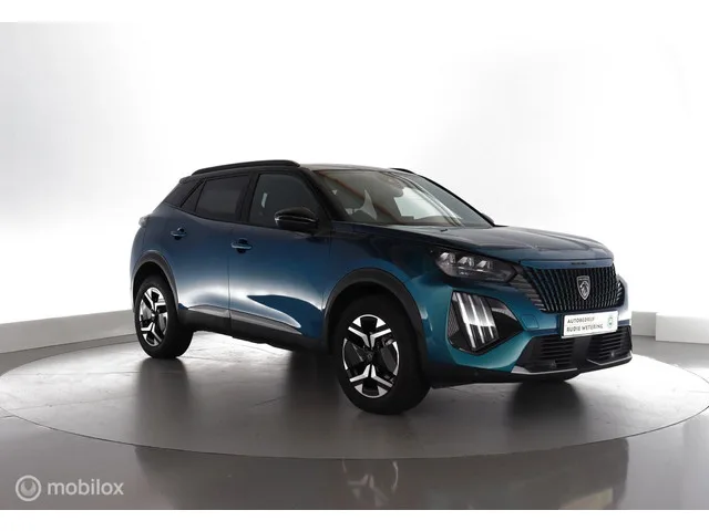 Peugeot 2008 1.2 Hybrid 136 GT automaat GT leer|led|cam360|ecc|dab|lmv17. Kenteken: JPH-10-G; Merk: Peugeot; Model: 2008; APK tot: 03-03-2029; Tellerstand: 23115 KM; Carrosserievorm: SUV; Aantal deuren: 5; Brandstofsoort: Hybride (Elektrisch/Benzine); Bouwjaar: 2025; Transmissie: Automaat 6-Traps; Kleur: blauw Metallic; Kleurnaam: Twotone Blue Obsesion Metallic met Zwart Metallic Dak Kleurcode EXT; Bekleding: Leder/Stof; Interieurnaam: STOF BELOMKA + EFFEN CAPY ""AT""; Motorinhoud: 1199 cc; Aantal cilinders: 3; Vermogen: 100 kW / 136pk; Ledig gewicht: 1272 kg; Max. trekgewicht: 1100 kg; Aantal zitplaatsen: 5; Verbruik: 4.9 l/100 km; BTW/Marge: BTW aftrekbaar, de prijs is inclusief BTW; Lengte: 430 cm; Breedte: 177 cm; Aantal sleutels: 2; Onderhoudshistorie aanwezig: Ja; Motorrijtuigenbelasting: (kwartaal / jaar) € 197 / € 788; Fabrieksgarantie tot: 05-03-2027; Aantal maanden fabrieksgarantie: 24; Bandenmaat voor: 215/60/17; Bandemaat achter: 215/60/17; Wielbasis: 2610 mm. Comfort. ...