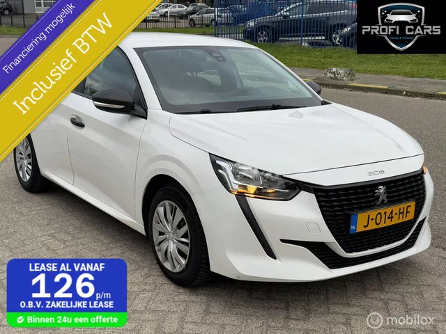 Peugeot 208 1.2 PureTech Airco Cruise Elek.Ramen. Kenteken: J-014-HF; Merk: Peugeot; Model: 208; APK tot: 18-08-2026; Tellerstand: 134115 KM; Carrosserievorm: Hatchback; Aantal deuren: 5; Brandstofsoort: Benzine; Bouwjaar: 2020; Transmissie: Handgeschakeld; Kleur: wit; Motorinhoud: 1199 cc; Aantal cilinders: 3; Motorcode: HM05; Vermogen: 55 kW / 75pk; Ledig gewicht: 955 kg; Max. trekgewicht: 500 kg; Aantal zitplaatsen: 5; Verbruik: 4.1 l/100 km; BTW/Marge: BTW aftrekbaar, de prijs is inclusief BTW; Lengte: 406 cm; Breedte: 175 cm; Motorrijtuigenbelasting: € 113 - 123 per kwartaal; Emissieklasse: Euro 6. Comfort. Cruise control. Exterieur. Centrale vergrendeling met afstandsbediening; Dimlichten automatisch. Infotainment. DAB; Radio. Interieur. Achterbank in delen neerklapbaar; Airco; Bestuurdersstoel in hoogte verstelbaar; Elektrische ramen voor; Stuurbekrachtiging. Overige. Anti Blokkeer Systeem; Anti doorSlip Regeling; Autonomous Emergency Braking; Bestuurdersairbag; Bluetooth...