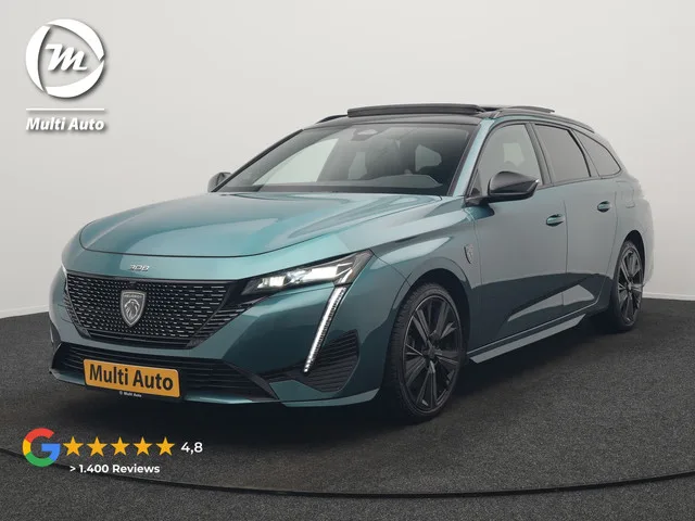 Peugeot 308 SW 1.6 Plug In Hybrid GT Pack Business 225pk Dealer O.H. PHEV | Panodak | Adaptive Cruise | 360 Camera | Lederen Sportstoelen Massage & Memory | Focal Sound | Stoelen & Stuur Verwarmd | Sfeerverlichting | Apple Carplay | Keyless | Navigatie | DAB |. Kenmerkend design en uitstekende prestaties. Dat is Peugeot, Motion & Emotion. Hybride auto's zoals deze staan er om bekend dat ze zuinig zijn met brandstof. Zon en frisse lucht krijgen vrij spel dankzij het elektrisch bediende glazen panorama dak; de elektrisch bedienbare achterklep maakt het u gemakkelijk en u voelt zich omgeven door luxe van het lederen interieur! Een weldaad voor uw rug en die van uw bijrijder: deze Peugeot 308 SW heeft verwarmbare voorstoelen met massagefunctie. Natuurlijk zijn de sportstoelen super functioneel als het rechterpedaal ingetrapt wordt. Maar ook voor het uiterlijk doen ze veel! Een verwarmd stuurwiel overbodige luxe? Wacht maar tot het kouder wordt! De geavanceerde matrix LED-verlichting in...