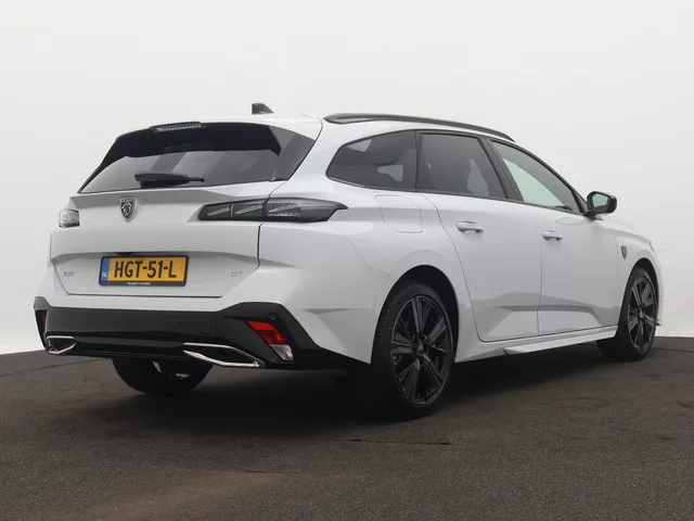 Nieuwe Peugeot 308 SW in de sportieve GT uitvoering. Registratie kenteken 28-02-2025. Rijk uitgerust met de volgende extra opties: Alcantara 'Maille' (DBFX) / Verwarmd stuurwiel (I301) / Schuifdak (TC07) / 18" Portland (ZHUN) / 360 Vision en Drive Assist Plus (J6QN). Direct leverbaar. 8 versn., Automaat; Modeljaar: 2021; 96 kW; 230 Nm; 3 cilinders; 1.199cc; Gewicht: 1.320kg; Laadvermogen: 540kg; GVW: 1.860kg; Max. trekgewicht: 1.200kg; LxBxH: 464x185x148cm; Wielbasis: 273cm; 52l tank; 0-100 km/h: 9,9s; Topsnelheid: 210km/u; Leder/alcantara; 5 zitplaatsen; 5,8 l/100km; 133 g/km CO₂; Energielabel C; Euro 6; Onderhoudsboekjes aanwezig; 100% Onderhouden; Eerste eigenaar; APK: tot feb. 2029; 2 sleutels (2 handzenders); SPOTiCAR Premium (24 maanden), BOVAG Garantie (12 maanden); BOVAG 40-Puntencheck; BOVAG Afleverbeurt; Wegenbelasting: € 192-€ 211p/kwrt; HGT-51-L