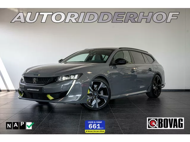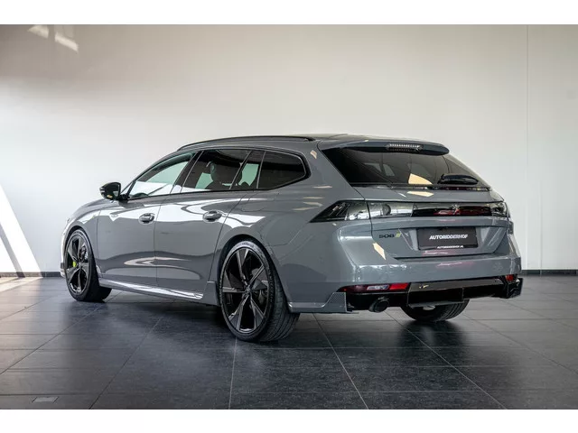 Peugeot 508 SW PSE HYbrid 360PK|Pano|7,4 kW On-board charg. Kenteken: GFK-49-D; Merk: Peugeot; Model: 508 SW; APK tot: 30-09-2026; Tellerstand: 22909 KM; Carrosserievorm: Station; Aantal deuren: 5; Brandstofsoort: Hybride (Elektrisch/Benzine); Bouwjaar: 2022; Transmissie: Automaat; Kleur: grijs; Motorinhoud: 1598 cc; Aantal cilinders: 4; Vermogen: 264 kW / 360pk; Aantal zitplaatsen: 5; Verbruik: 1.8 l/100 km; BTW/Marge: BTW aftrekbaar, de prijs is inclusief BTW. Comfort. Regensensor. Exterieur. Adaptief demping systeem; Buitenspiegel(s) automatisch dimmend; Buitenspiegels elektrisch inklapbaar; Buitenspiegels elektrisch verstel- en verwarmbaar; Buitenspiegels met verlichting; Dakrails; Dimlichten automatisch; Elektrisch glazen panorama-dak; Extra getint glas achter; Getint glas; Glazen schuifdak; Keyless entry; Koplampen adaptief; LED achterlichten; LED dagrijverlichting; LED koplampen; Lichtmetalen velgen 20"; Metaalkleur; Panoramadak; Park Distance Control; Parkeer assistent...