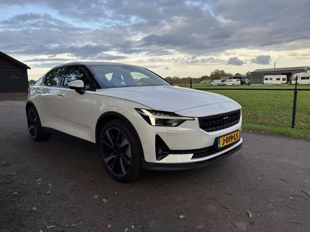 in nette staat verkerende Polestar 2 Pilot Plus 78 KWH. AWD , 408 pk. in mooie kleur Snow With (parelmoer). Meeneemprijs € 15200 exclusief btw. prijs inclusief btw € 18350. meer info bel 0653304650. Meer informatie: Vierwielaandrijving; Bandenmaat: 245/40 R19; Vermogen: 300 kW (408 PK); Ledig gewicht: 2.098 kg; Laadvermogen: 502 kg; GVW: 2.600 kg; Max. trekgewicht: 1.500 kg (ongeremd 750 kg); LxBxH: 461 x 186 x 148 cm; Wielbasis: 274 cm; Accu: 78 kWh; Accu laden: Type 2, 3-fasen, 11 kW, compleet vol in 8 uur; Accu snelladen: Combined Charging System, 626 km actieradius per uur, compleet vol in 3 uur en 33 minuten; Actieradius: 500 km; Acceleratie (0-100): 4,7 s; Topsnelheid: 205 km/u; Interieur: Antraciet, Stof; 5 zitplaatsen; Gemiddeld elektriciteitsverbruik: 15,6 kWh/100km; Energielabel: A; Dealer onderhouden (onderhoudsboekjes aanwezig); APK gekeurd tot okt. 2026; Schadevrij; 2 sleutels (2 handzenders); Motorrijtuigenbelasting: € 99 - € 110 per kwartaal; Emissie: Zero emissie